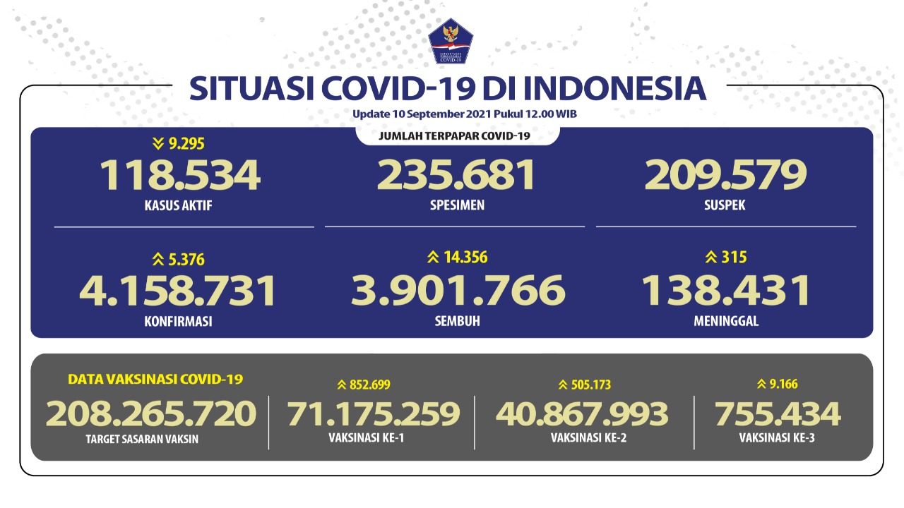 UPDATE HARIAN COVID-19, JUMAT, 10 SEPTEMBER 2021