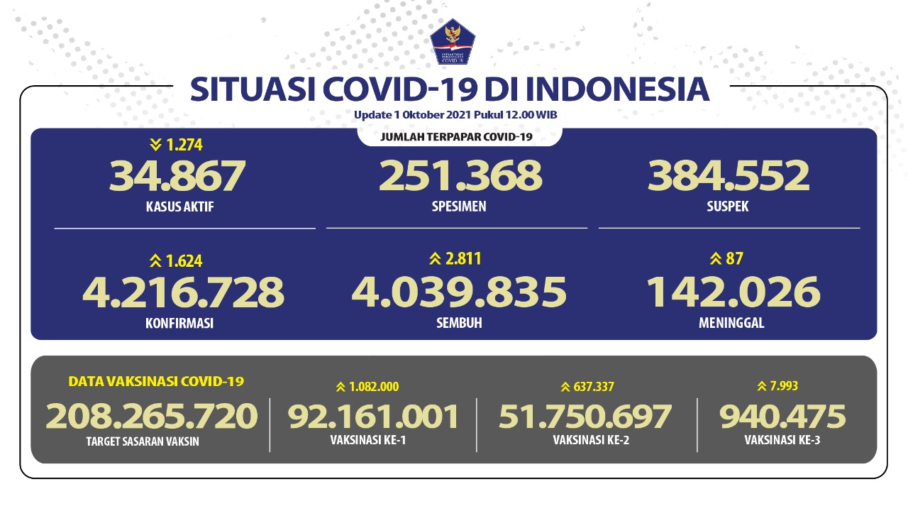 UPDATE HARIAN COVID-19, JUMAT, 1 OKTOBER 2021