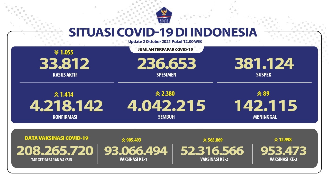 2). Sembuh 2.380 orang, sehingga menjadi 4.042.215 orang.
