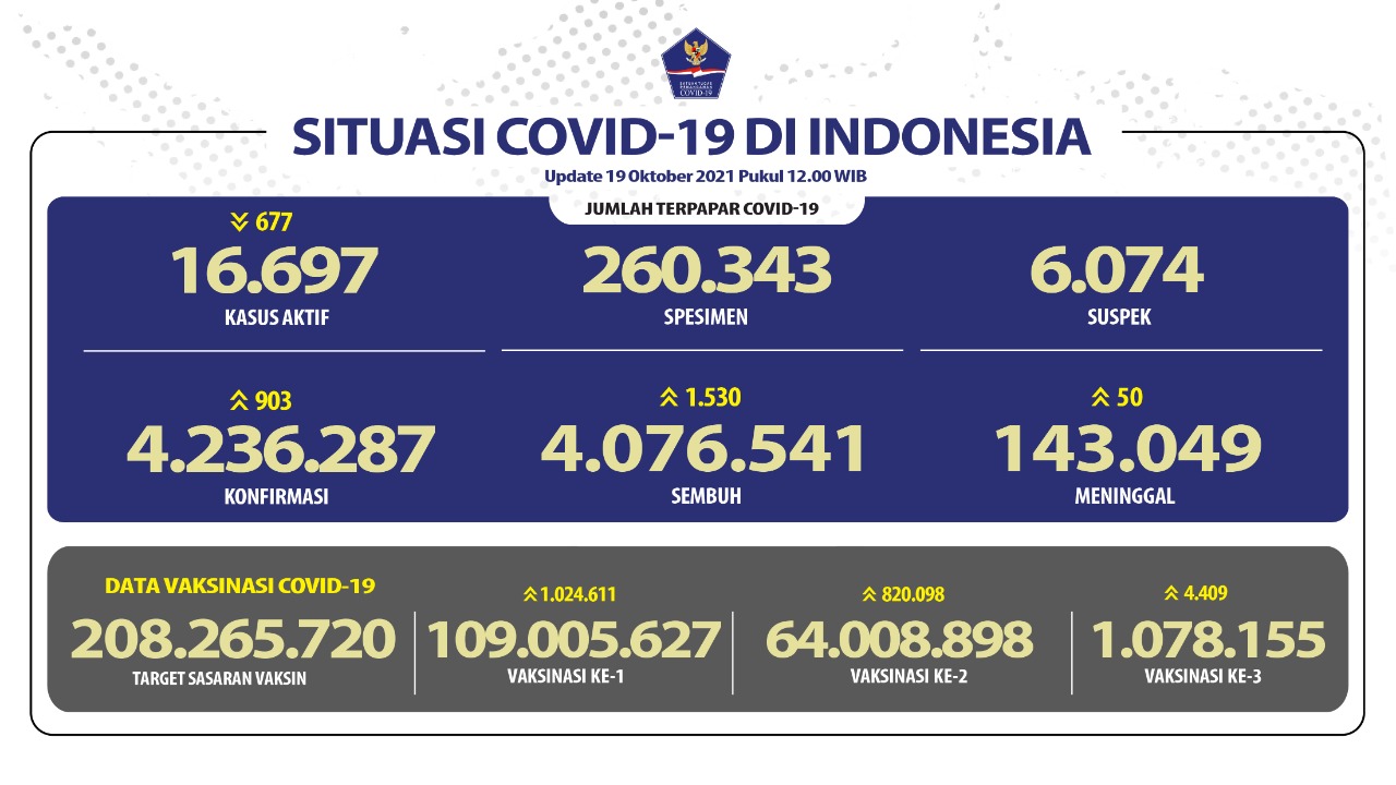 1). Konfirmasi 903 orang, sehingga menjadi 4.236.287 orang.