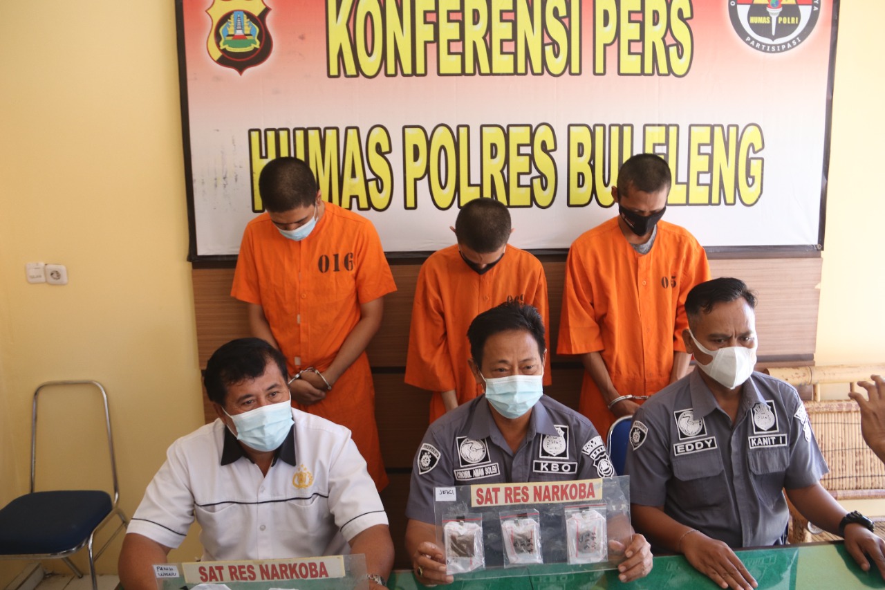 BULELENG – Satuan Reserse Narkoba Polres Buleleng menangkap tiga pemuda yang membeli tembakau gorilla lewat jasa pengiriman barang. Hal itu dikatakan KBO Sat Resnakoba