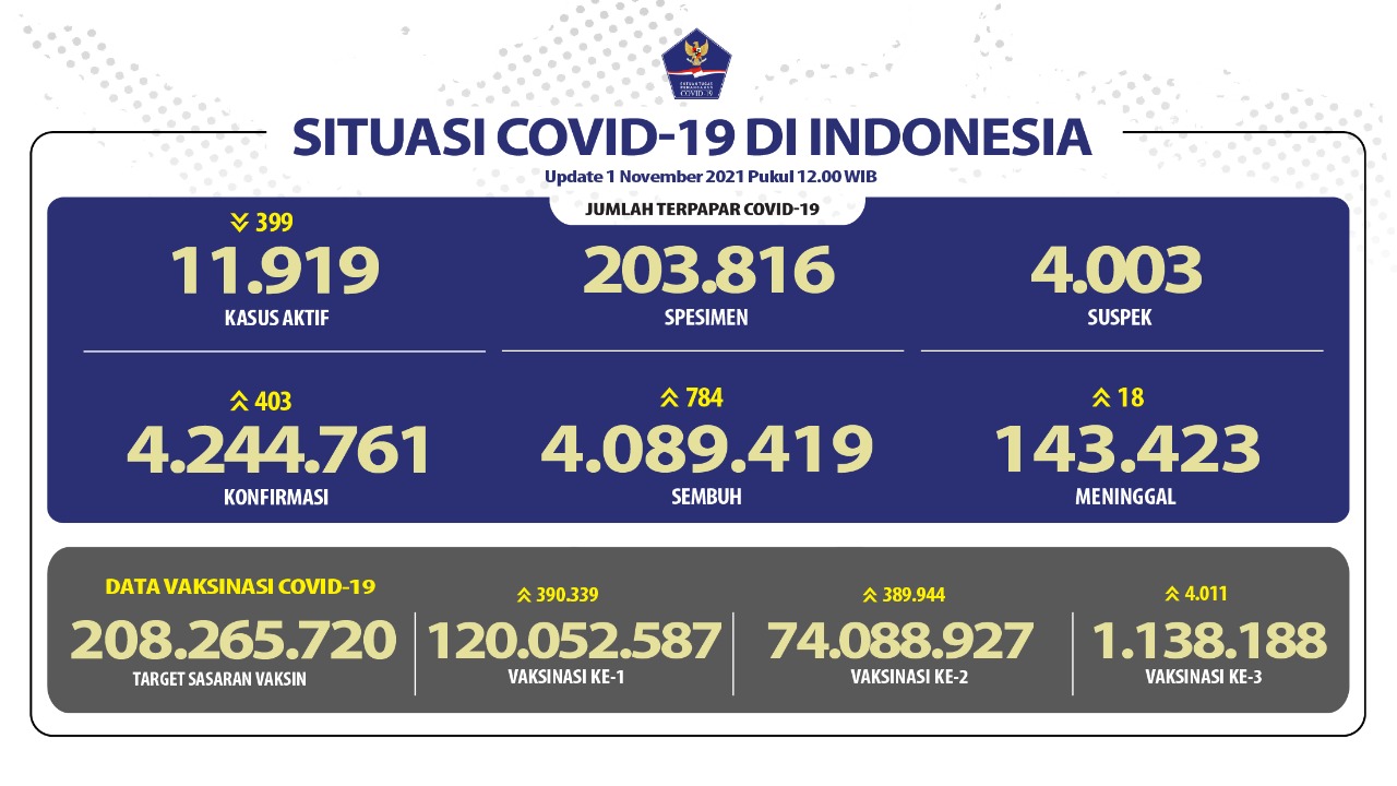 Update Covid-19 Nasional dan Provinsi Bali Senin, 1-11-2021