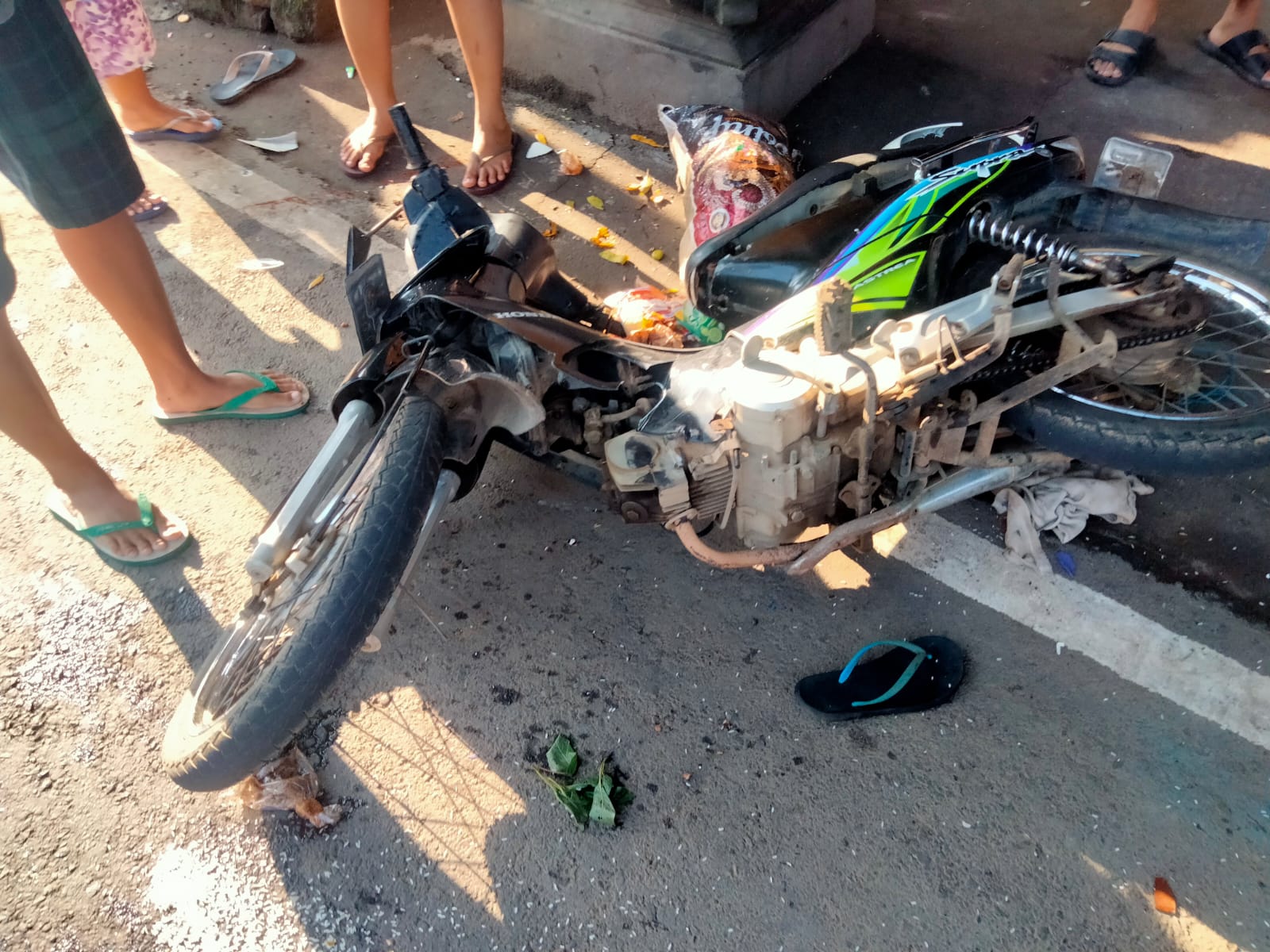 Sepeda motor Supra hendak menyeberang memotong jalan ke selatan. Pada saat sepeda Honda Supra DK 5155 VJ menyeberang ke selatan, datang menabrak dari arah timur sepeda Honda Scoopy DK 6440 SX sehingga terjadi laka lantas.