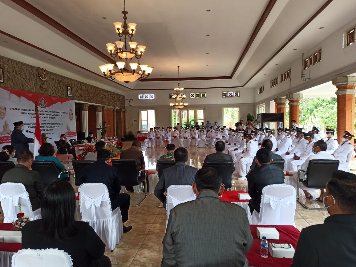 BULELENG – Bupati Buleleng Putu Agus Suradnyana melantik 40 perbekel terpilih dan 1 perbekel pengganti antar waktu. Bertempat di Lobi Atiti Wisma Kantor Bupati
