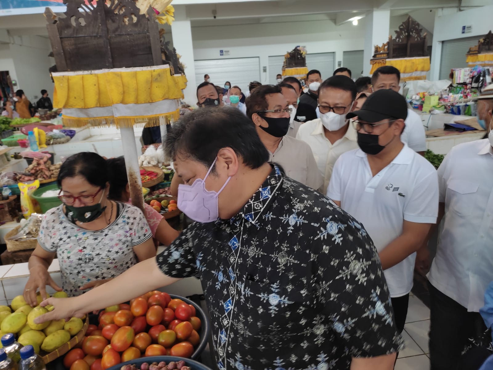 DENPASAR – Menteri Koordinator Bidang Perekonomian RI, Airlangga Hartanto, mengunjungi Pasar Phula Kerti, Desa Adat Sesetan pada Sabtu (18/12/2021) pagi. Turut hadir Wakil Walikota