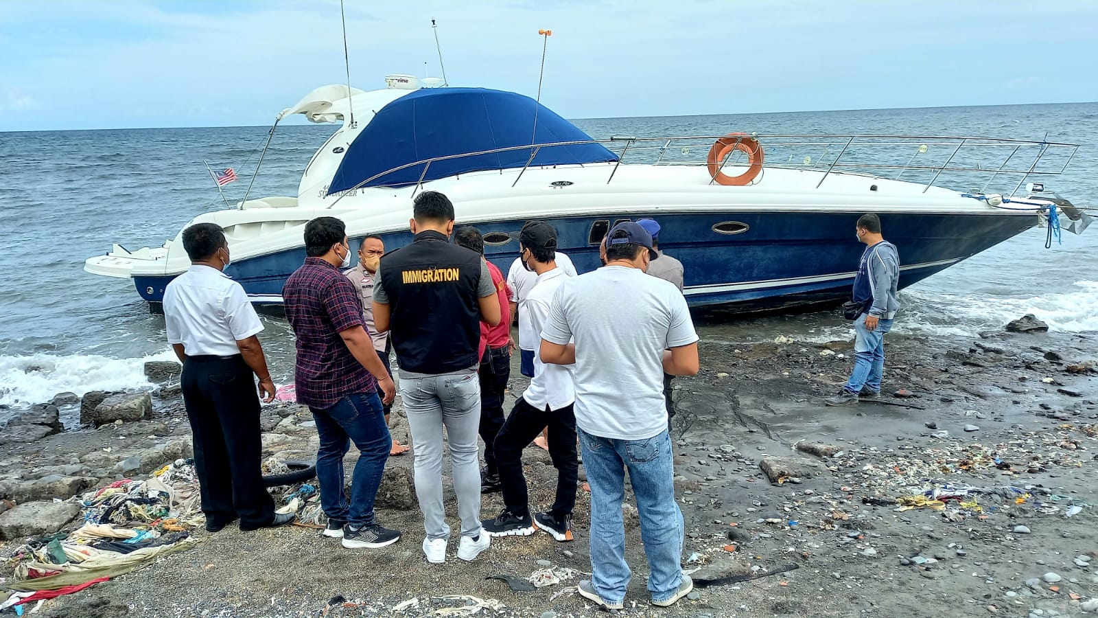 BULELENG – Sebuah kapal yacht Sundancer 44 berbendera Malaysia ditemukan terdampar di Pantai Banyuasri, sebelah barat utara SPN Singaraja, Buleleng, Bali, Rabu (23/2/2022). Tidak