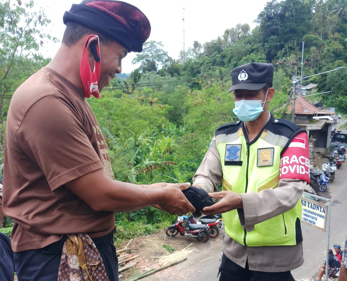 BULELENG – Untuk mencegah mewabahnya Covid-19, penerapakan prokes Covid-19 salah satunya penggunaan masker harus tetap diterapkan dengan baik dan penuh disiplin. Bhabinkamtibmas Desa Sepang,