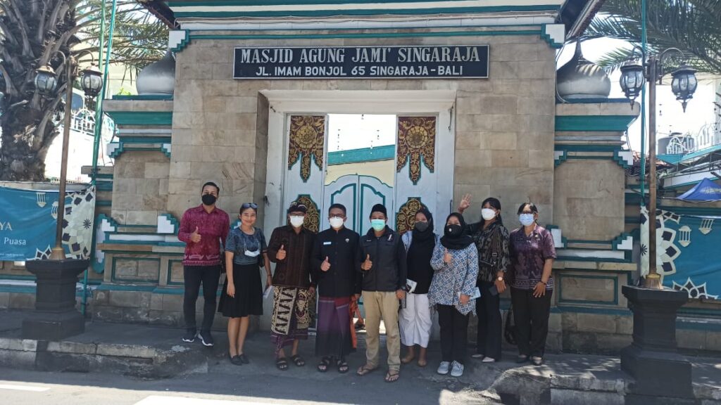 Kunjungan Sekretaris Deputi Bidang Industri dan Investasi Kemenparekraf diakhiri dengan foto bersama di depan pintu gerbang, ikon dari Masjid Agung Jami’ Singaraja, dengan rombongan dan pengurus DKM Masjid Agung Jami’ Singaraja. (bs)