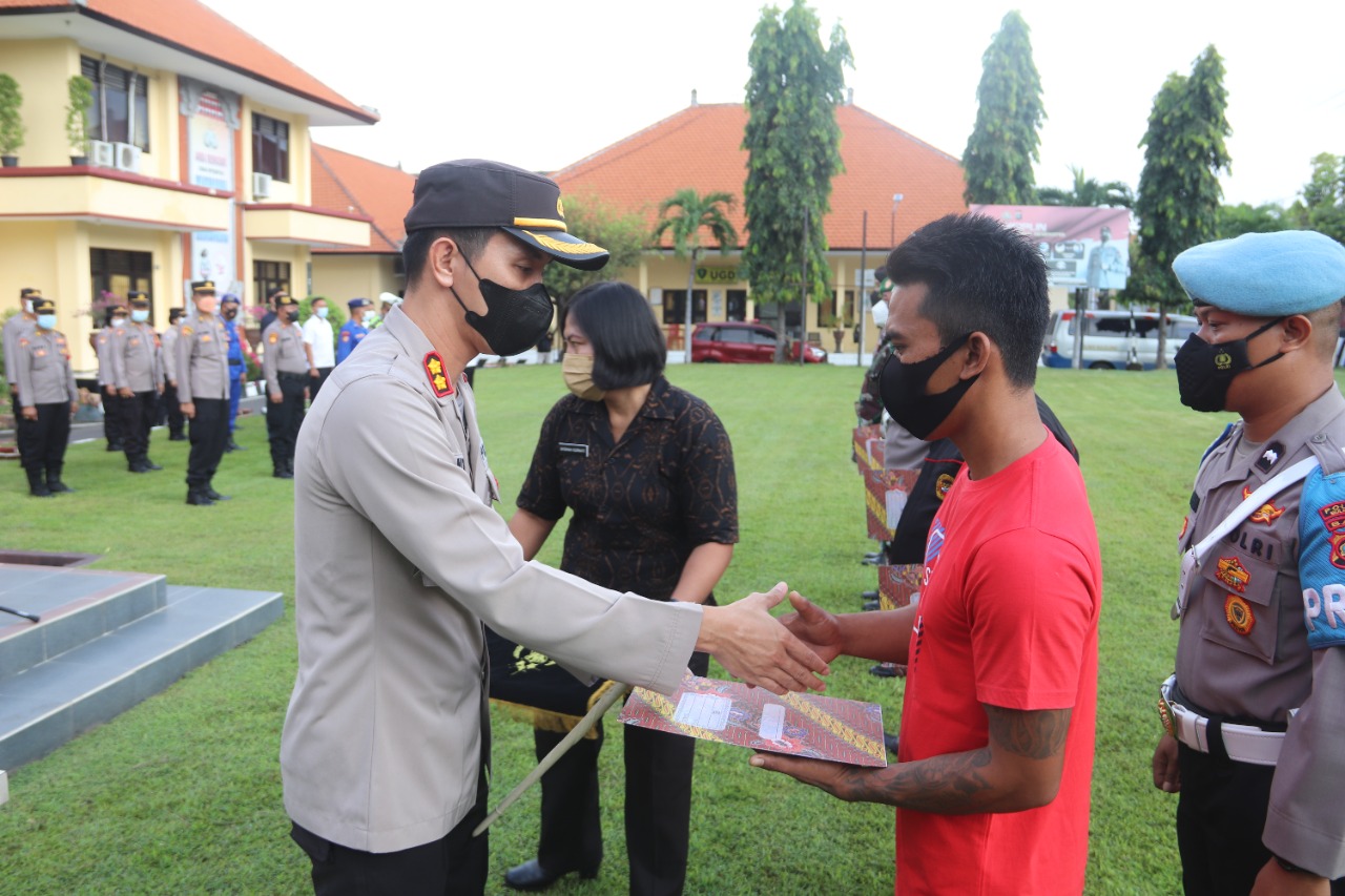 BULELENG – Kapolres Buleleng, AKBP Andrian Pramudianto, S.H., S.I.K., M.Si., memberikan penghargaan kepada beberapa warga dan personel Kodim 1609/Buleleng dan Polsek Kubutambahan yang menyelamatkan
