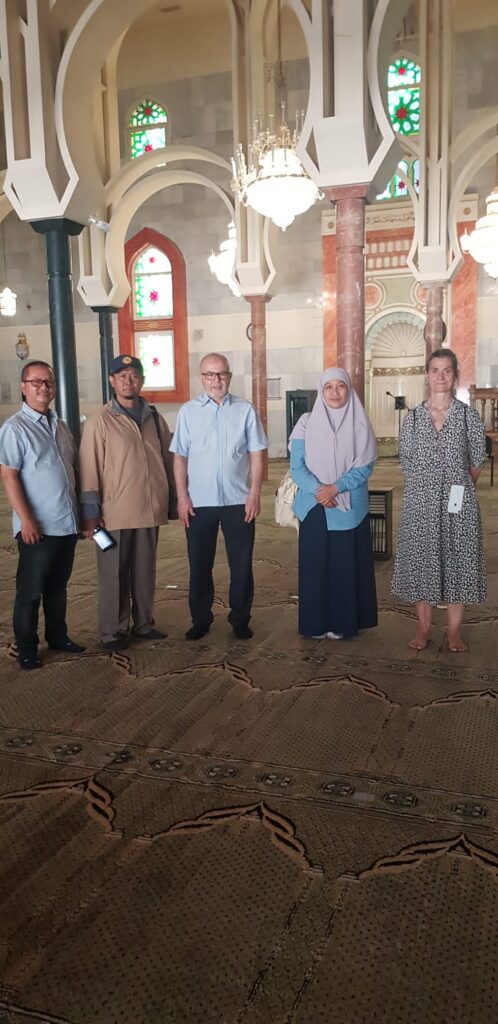 Menariknya, di masjid ini terdapat restoran, sekolah, perpustakaan besar dan tentu saja ruang sholat. Saya bersyukur langsung diterima dan ditemani oleh Muhammad Sa’id, orang Jordania yang kedudukannya sebagai sekretaris pengelola masjid.