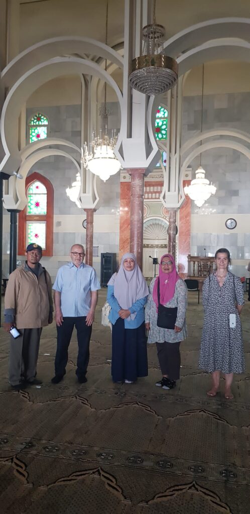 Kebetulan kunjungan saya juga bersama dengan orang lokal bernama Ana. Dia tertarik untuk masuk masjid dan dengan sangat ramah diterima oleh pihak pengelola. Dia tidak diwajibkan harus memakai pakaian yang menutup aurat dulu. Atau dicurigai najis. Dia bebas berjalan mengelilingi masjid bahkan ke ruang utama yang digunakan untuk sholat. Tentu ini sangat menarik berdakwah di daerah mayoritas nonmuslim.