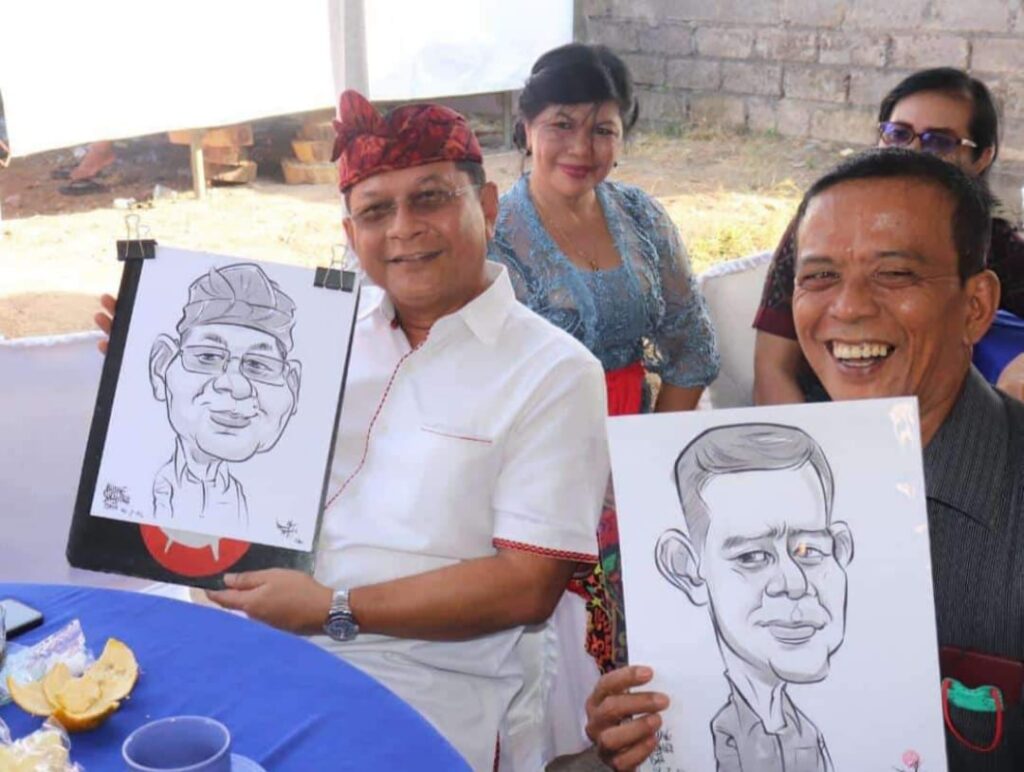 “Saya puas kalau mereka tertawa ketika ditunjukkan karikatur wajahnya. Dia menertawakan dirinya sendiri. Di sana berarti saya berhasil,” kata I Wayan Tama, Entertain Caricaturist, saat ditemui di acara resepsi pernikahan I Made Sukamara dan Istacy Rosree Octivany Robin (putri wartawan senior Putu Edi Robin), Jumat (29/7/2022), di Pulau Komodo Gang Rembulan, Banyuning, Singaraja.