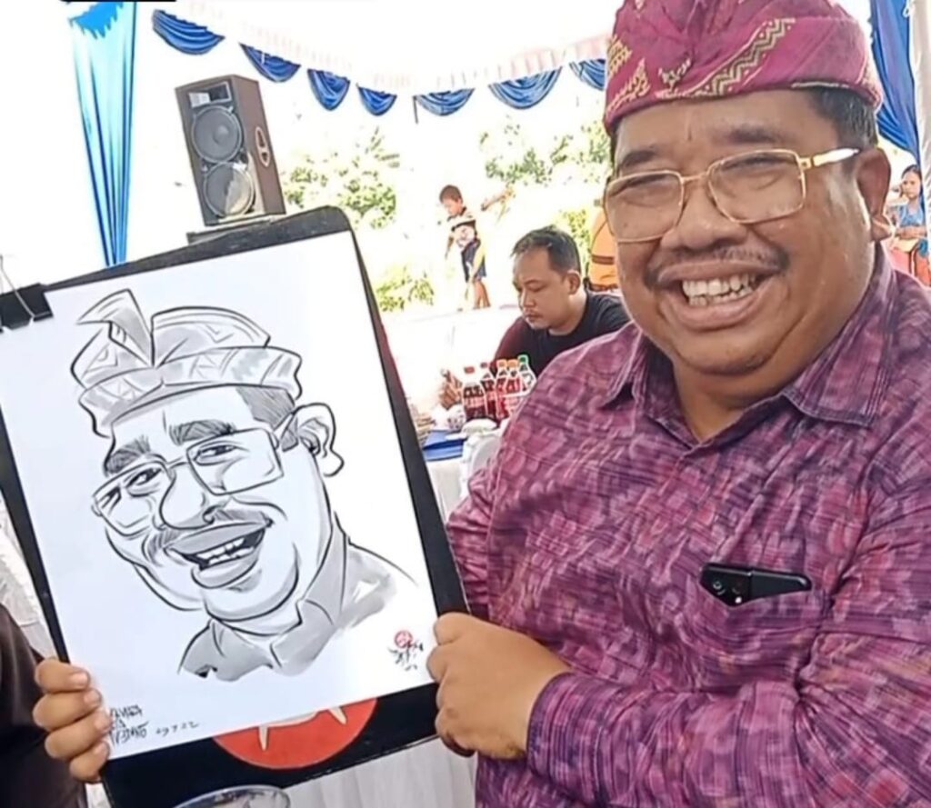 BULELENG – Memadukan seni melukis karikatur dan kebahagiaan suasana suatu pernikahan. Itulah yang dilakukan seniman wedding caricature, I Wayan Tama. Para undangan suatu resepsi pernikahan (wedding) tak hanya merasakan kebahagiaan menyaksikan pasangan penganten dan keluarganya bahagia, namun juga merasakan senang mendapat hadiah karikatur tentang dirinya.
