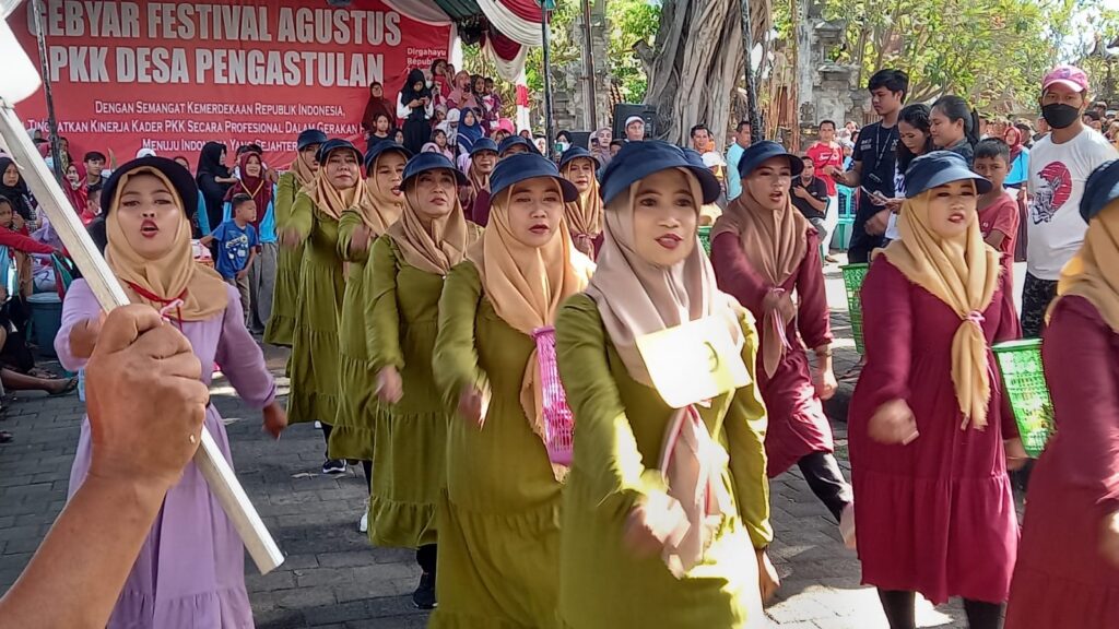 BULELENG – Kolaborasi seni baleganjur dan seni hadrah mewarnai Gebyar Festival Agustus Desa Pengastulan, Kecamatan Seririt, Buleleng, Bali. Selain itu, berbagai lomba dan pertandingan dilaksanakan dalam kegiatan yang digelar oleh PKK (Pemberdayaan Kesejahteraan Keluarga) Desa Pengastulan tersebut.