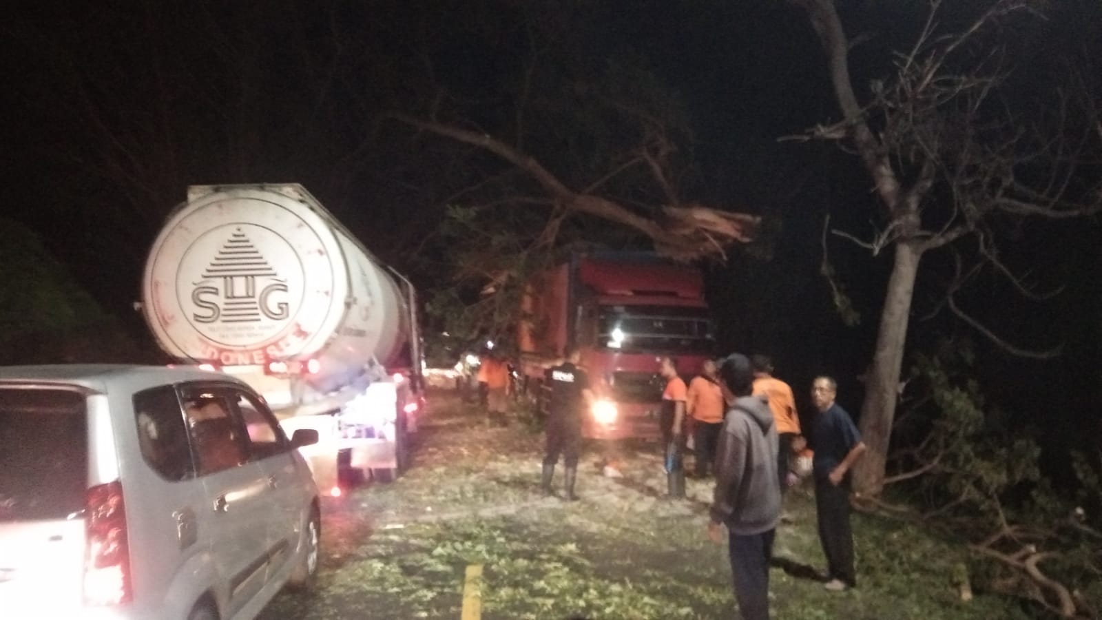 Truk Tronton Tabrak Dahan Pohon Perindang