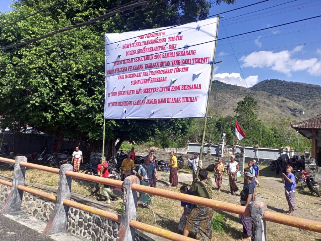 WARGA eks transmigran Timor Timur (Timtim) di Desa Sumberklampok, Kecamatan Gerokgak, Buleleng, Bali memasang baliho di sejumlah lokasi. Baliho-baliho tersebut berisi tagihan kepada pemerintah pusat untuk melepaskan lahan yang ditempati mereka kepada eks transmigran Timtim di desa tersebut.