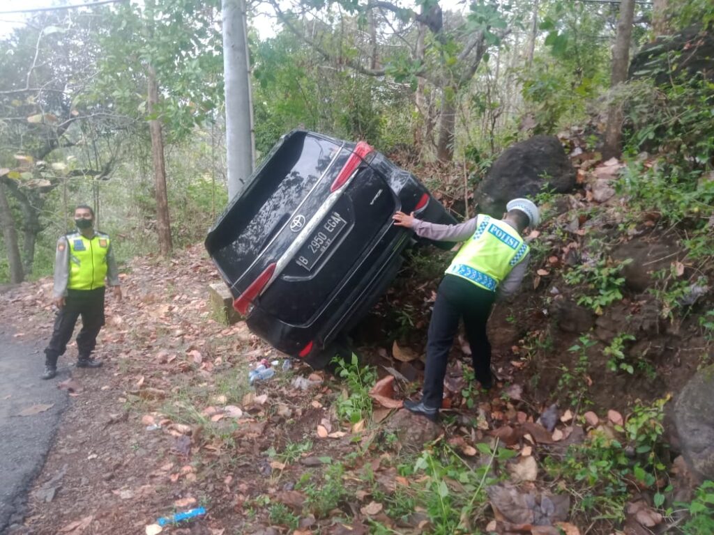 “Pada saat di turunan dan menikung, karena diduga rem tidak berfungsi dan pengemudi tidak menguasai medan, kendaraan tersangkut ke tebing dan tiang listrik di pinggir jalan,” ujarnya.