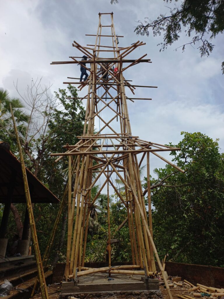 Sementara itu, Perbekel Desa Tembok, Dewa Komang Yudi Astara, menjelaskan, proses pembangunan tower bambu sudah mulai dikerjakan dari tiga hari yang lalu. Namun, proses sinkronisasi ide pembangunan itu yang lama karena melibatkan tenaga teknis arsitektur dari ITB.