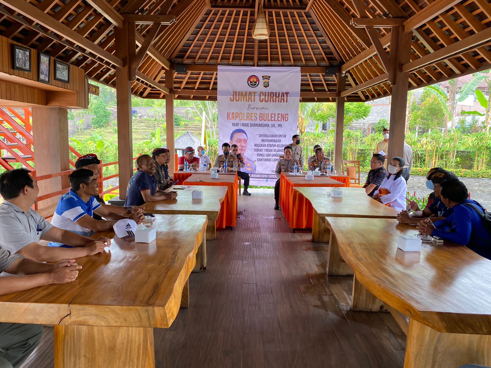 BULELENG – Program “Jumat Curhat” Kapolres Buleleng AKBP I Made Dhanuardana, S.I.K., M.H., mendapatkan apresiasi dari tokoh masyarakat saat dilaksanakan di Desa Sambangan, Kecamatan