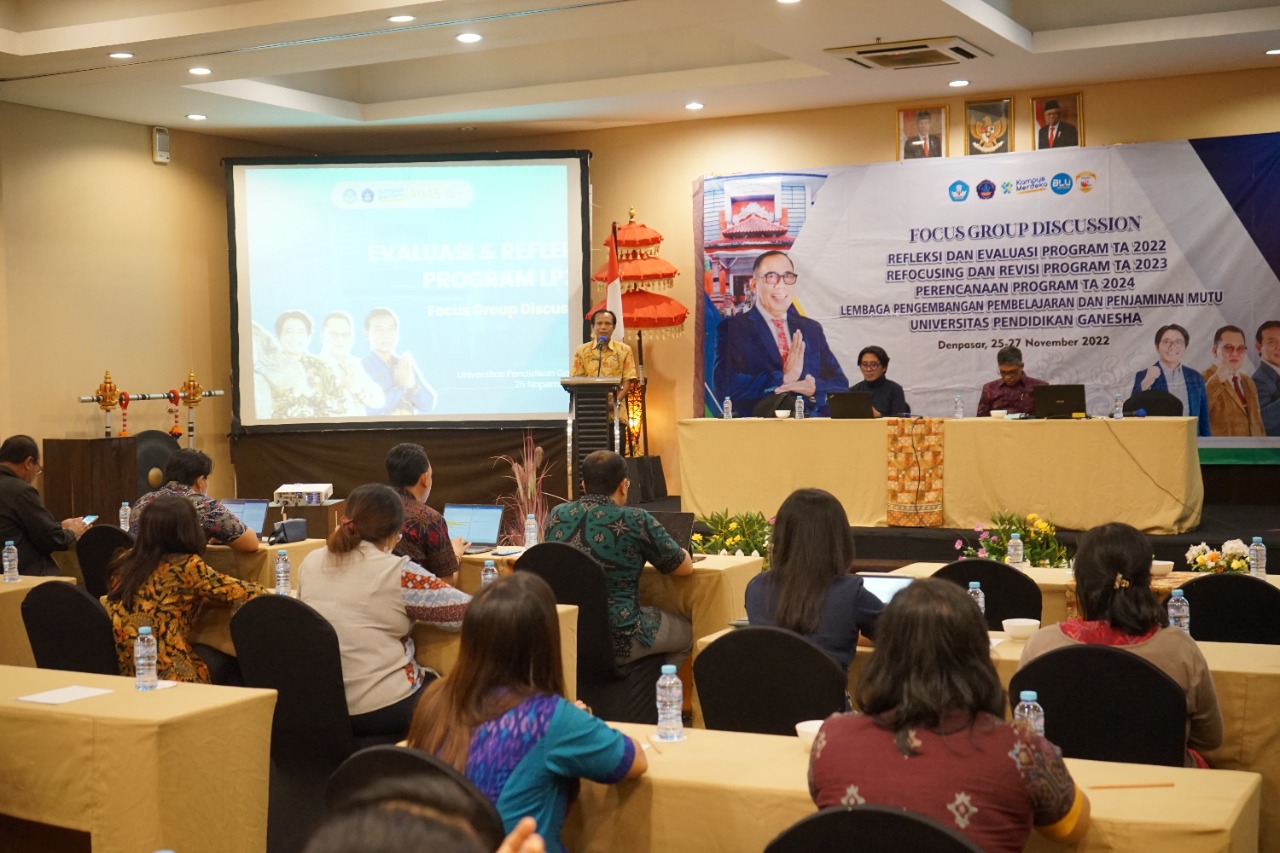 DENPASAR – Universitas Pendidikan Ganesha (Undiksha) menggelar Focus Group Discussion (FGD) evaluasi dan refleksi program Lembaga Pengembangan Pembelajaran dan Penjaminan Mutu (LPPPM) tahun 2022