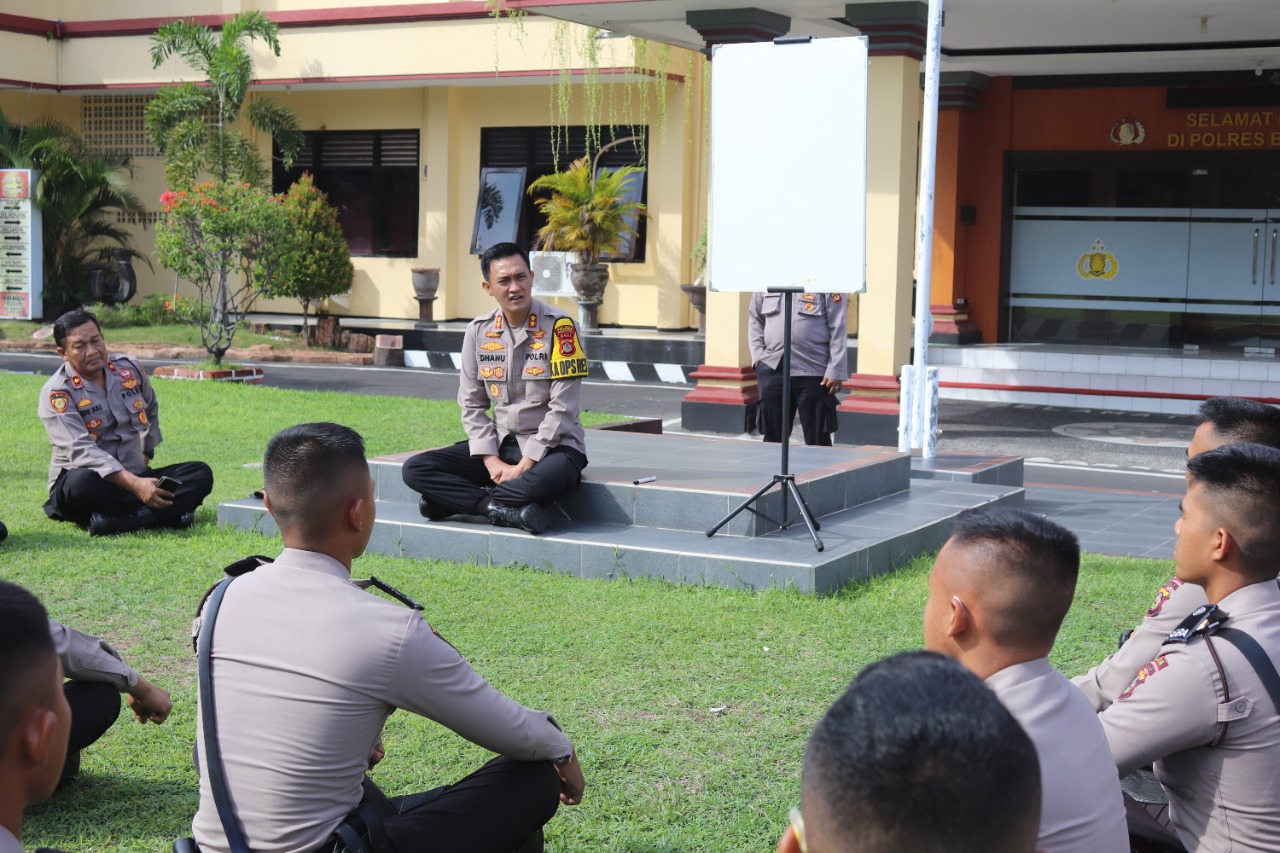 “Pahami dan pedomani ketentuan undang-undang dalam melaksanakan tugas sehingga tidak menyimpang dari ketentuan peraturan perundang-undangan yang ada,” tegas Kapolres. (bs)
