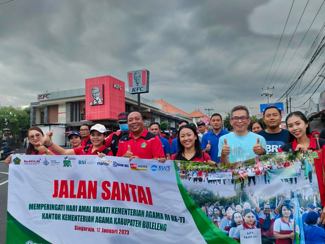 BULELENG – Keluarga besar Kantor Kemenag Kabupaten Buleleng menggelar Jalan Sehat Kerukunan bertajuk Moderasi Beragama serangkaian Hari Amal Bhakti (HAB) ke-77 pada Kamis, 12