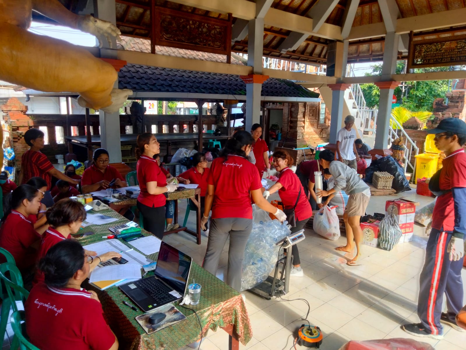 DENPASAR – Memperingati HUT pertama, Bank Sampah Kayumas Bersemi Br. Kayumas Kelod dengan potong tumpeng dan membagikan hadiah bagi nasabah baru yang diadakan pada