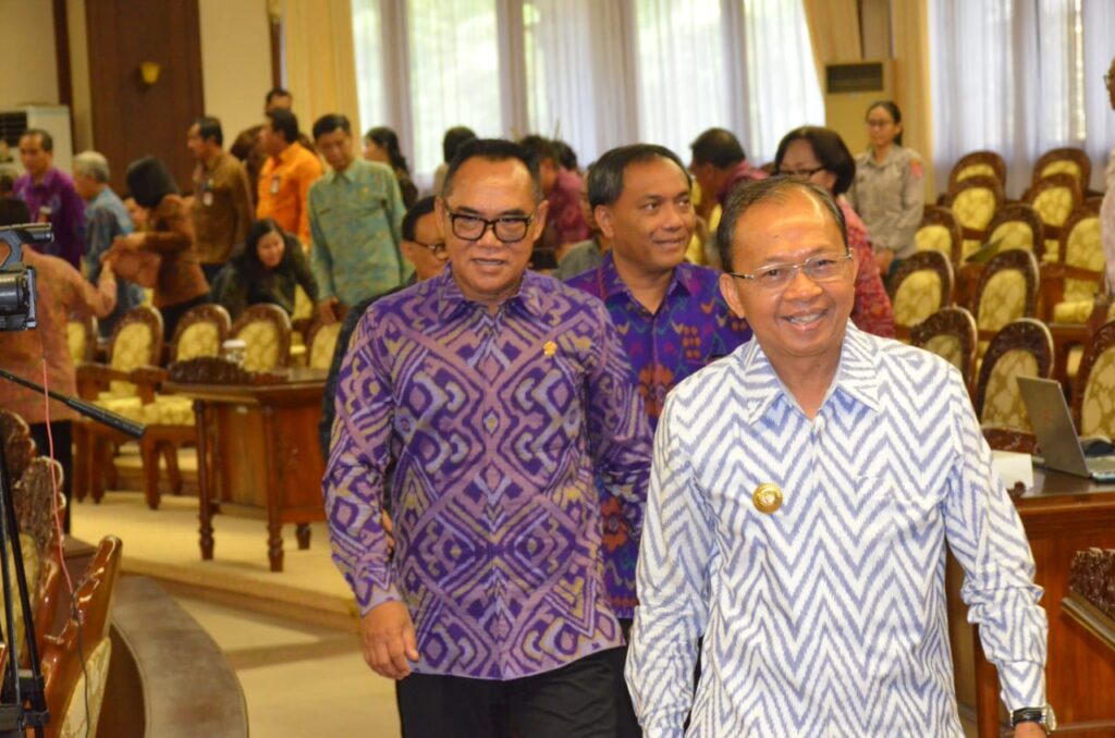 “Hal ini sejalan dengan visi Nangun Sat Kerti Loka Bali Melalui Pola Pembangunan Semesta Berencana Menuju Bali Era Baru. Visi tersebut diwujudkan dengan menata secara fundamental dan komprehensif Pembangunan Daerah Bali yang seimbang, selaras, harmonis dan berkelanjutan dengan tiga dimensi utama; menjaga kesucian alam Bali, memberdayakan dan meningkatkan kesejahteraan Krama Bali, serta memelihara dan melestarikan kebudayaan Bali sesuai nilai-nilai kearifan-kearifan lokal,” ujarnya.