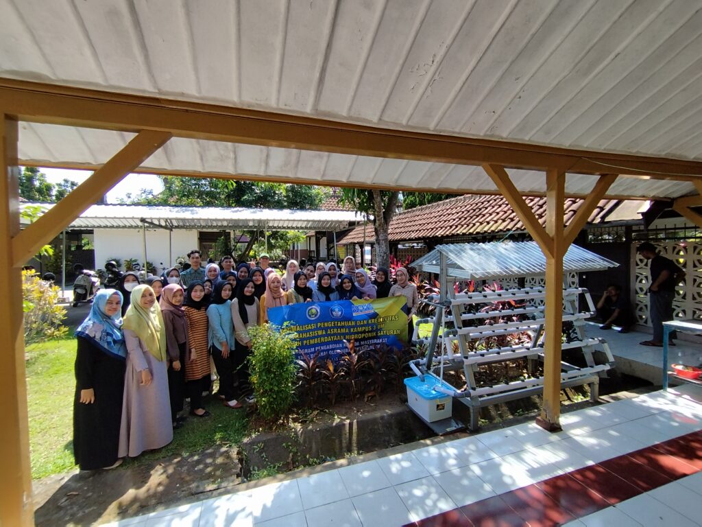 BLITAR – Mahasiswa yang tinggal di Asrama Kampus 3 Universitas Negeri Malang (UM) mendapatkan sosialisasi bagaimana menanam sayuran hidroponik. Sosialisasi diberikan oleh Dosen UM, Lestariningsih, S.Pt., M.P. dan Dr. Surayanah, M.Pd.