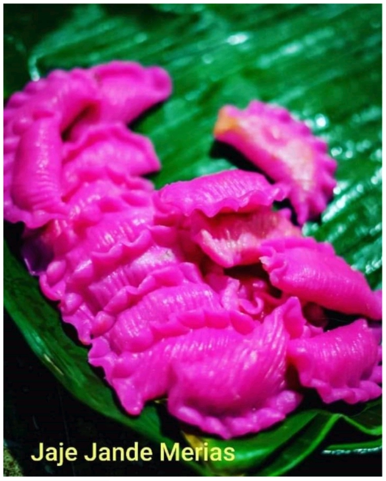 Jaje jande merias atau kue janda berhias. Merias bahasa Loloan yang berarti berhias.