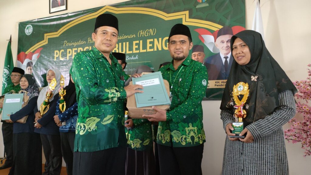BULELENG – Pimpinan Cabang Persatuan Guru Nahdlatul Ulama (PC Pergunu Buleleng) menggelar puncak Peringatan Hari Guru Nasional (HGN) di Aula Kemenag Buleleng, Sabtu (26/11//2023). Perayaan juga diwarnai dengan pembagian penghargaan dan tropi kepada para juara lomba HGN pada 18 November yang lalu di Tegallinggah.