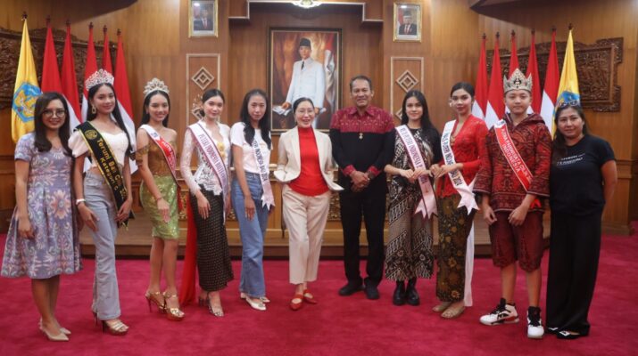 DENPASAR – Penjabat (Pj) Ketua Dekranasda Provinsi Bali, Ny drg. Ida Mahendra Jaya, mengikuti acara nonton bareng (nobar) Grand Final Pemilihan Puteri Indonesia 2024 dari Gedung Kertha Sabha, Denpasar pada Jumat (9/3) malam.