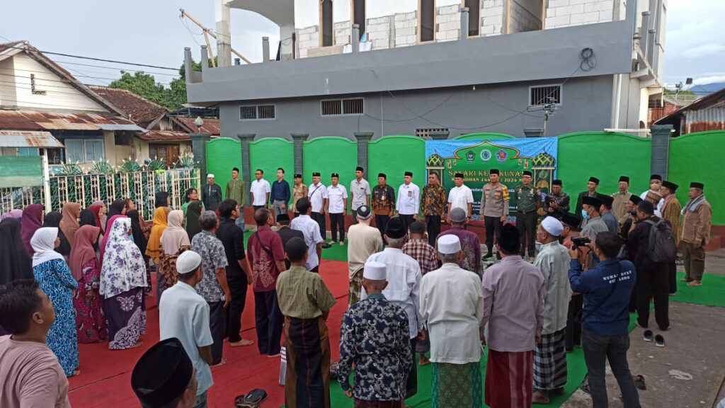 Para pejabat dari Forkompimda Buleleng tampak berbaur dengan masyarakat di halaman Masjid Jami’ As Shalihin Pengastulan. Tampak Kepala Kebangpol Buleleng, Komang Kappa Tri Aryandono mewakili Pj. Bupati Buleleng.