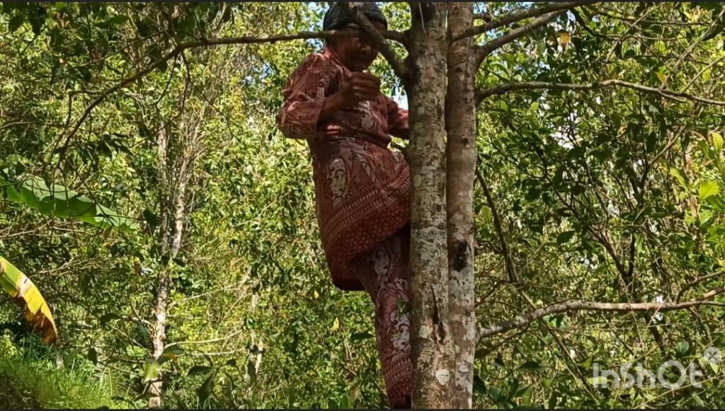 Apakah ada persiapan khusus atau doa khusus yang dilakukan Nenek Kaiyah saat naik pohon cengkeh? “Tidak ada. Ya baca bismillah dan sholawat saja,” jawab Nenek Kaiyah.