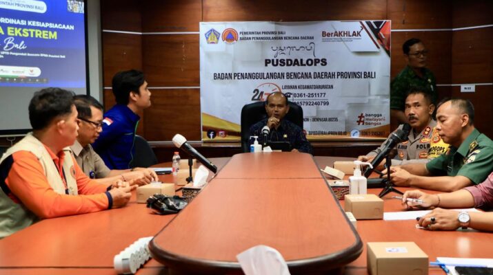 DENPASAR – Mengantisipasi potensi bencana akibat cuaca ekstrem di akhir tahun, Badan Penanggulangan Bencana Daerah (BPBD) Provinsi Bali menggelar rapat koordinasi kesiapsiagaan bersama instansi