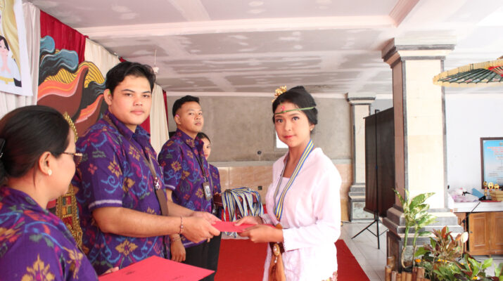 BULELENG – Madyama Widyalaya Jnana Dharma Sastra Desa Umejero, Kecamatan Busungbiu, Kabupaten Buleleng menggelar upacara samawartana atau upacara Hindu masa brahmacari yang merupakan masa