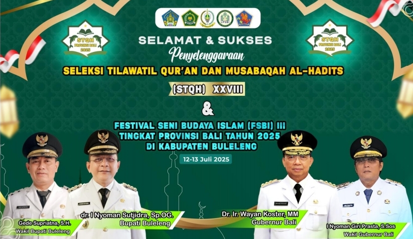 BULELENG – Seleksi Tilawatil Qur’an dan Musabaqah Al Hadis (STQH) XXVIII dan Festival Seni Budaya Islam (FSBI) III Provinsi Bali tahun 2025 akan digelar Patas, Kecamatan Gerokgak, Buleleng, 12-13 Juli 2025. Acara tersebut rencananya dibuka Gubernur Bali, Wayan Koster.