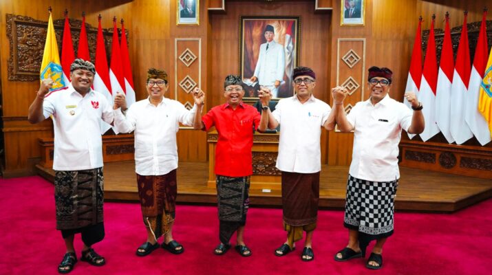 DENPASAR – Gubernur Bali, Wayan Koster menandatangani perjanjian kerjasama antara Pemerintah Provinsi Bali dan Pemerintah Kota Denpasar, Pemerintah Kabupaten Badung, Pemerintah Kabupaten Gianyar serta