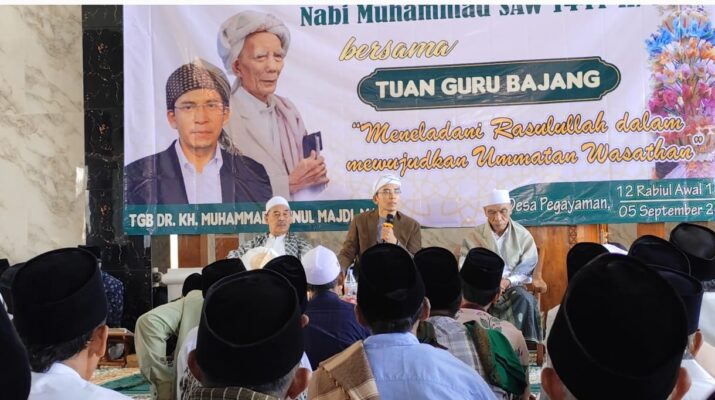 BULELENG – Tuan Guru Bajang (TGB) Dr. K.H. Muhammad Zainul Majdi, MA, memberikan ceramah dalam Tabligh Akbar serangkaian Peringatan Maulid Nabi Muhammad SAW Masjid