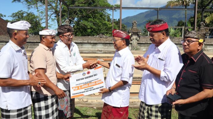 TABANAN – Gubernur Bali, Wayan Koster, menyerahkan bantuan secara simbolis senilai Rp 1 miliar untuk perbaikan empat bangunan yang rusak di Pura Luhur Pucak Tinggah, Banjar Angseri, Desa Angseri, Kecamatan Baturiti, Kabupaten Tabanan, Senin (30/3/2026). Bantuan tersebut diberikan menyusul kerusakan bangunan pura akibat diterjang angin kencang pada Kamis (5/3/2026).