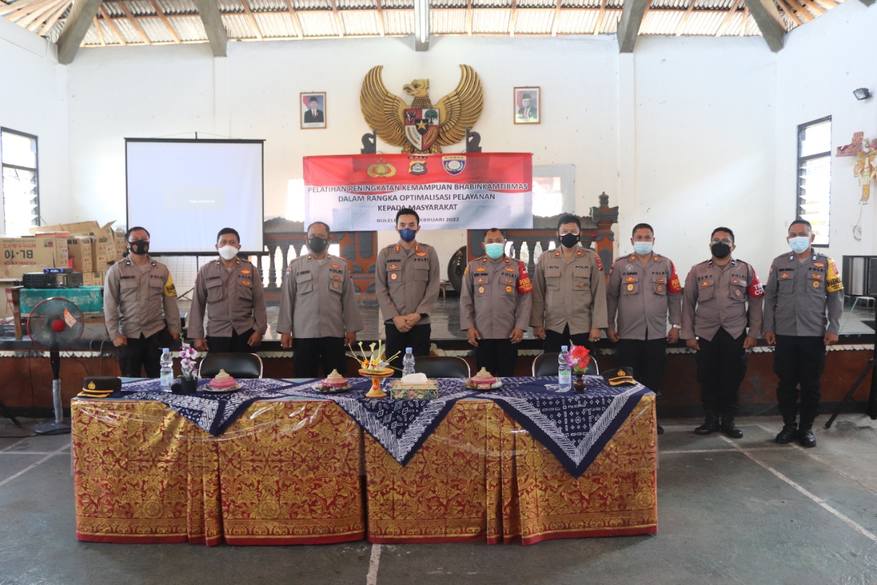 BULELENG – Untuk meningkatkan pelayanan Bhabinkamtibmas terhadap masyarakat, Polda Bali melalui Program Dir Bimmas pada Jumat (18/2/2022) melaksanakan pelatihan peningkatan kemampuan Bhabinkamtibmas dalam rangka
