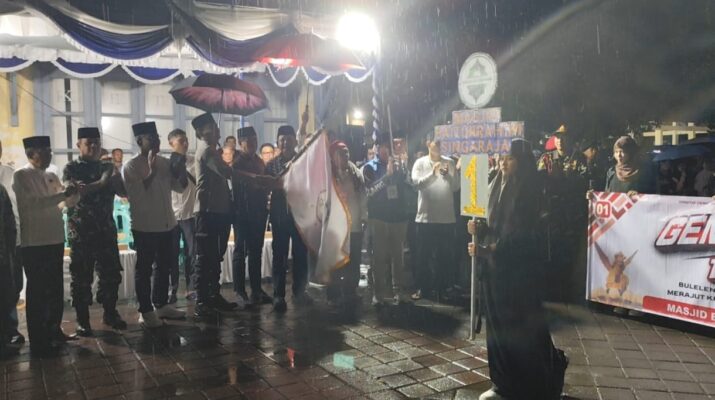 BULELENG – Di tengah hujan yang mengguyur kota Singaraja, Bupati Buleleng, dr. Nyoman Sutjidra, Sp.OG., melepas peserta lomba “Gema Takbir Keliling 1446 H” di