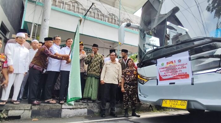 BULELENG – Bupati Buleleng I Nyoman Sutjidra dan Wakil Bupati Gede Supriatna, didampingin Kepala Kemenag Buleleng, I Gede Sumarawan, melepas para calon jemaah haji
