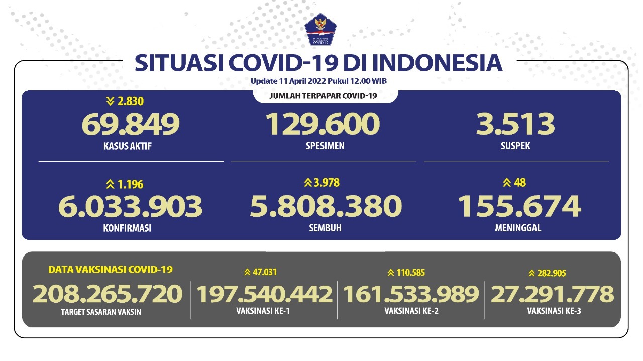 Update Covid-19 Nasional dan Provinsi Bali Senin, 11-4-2022