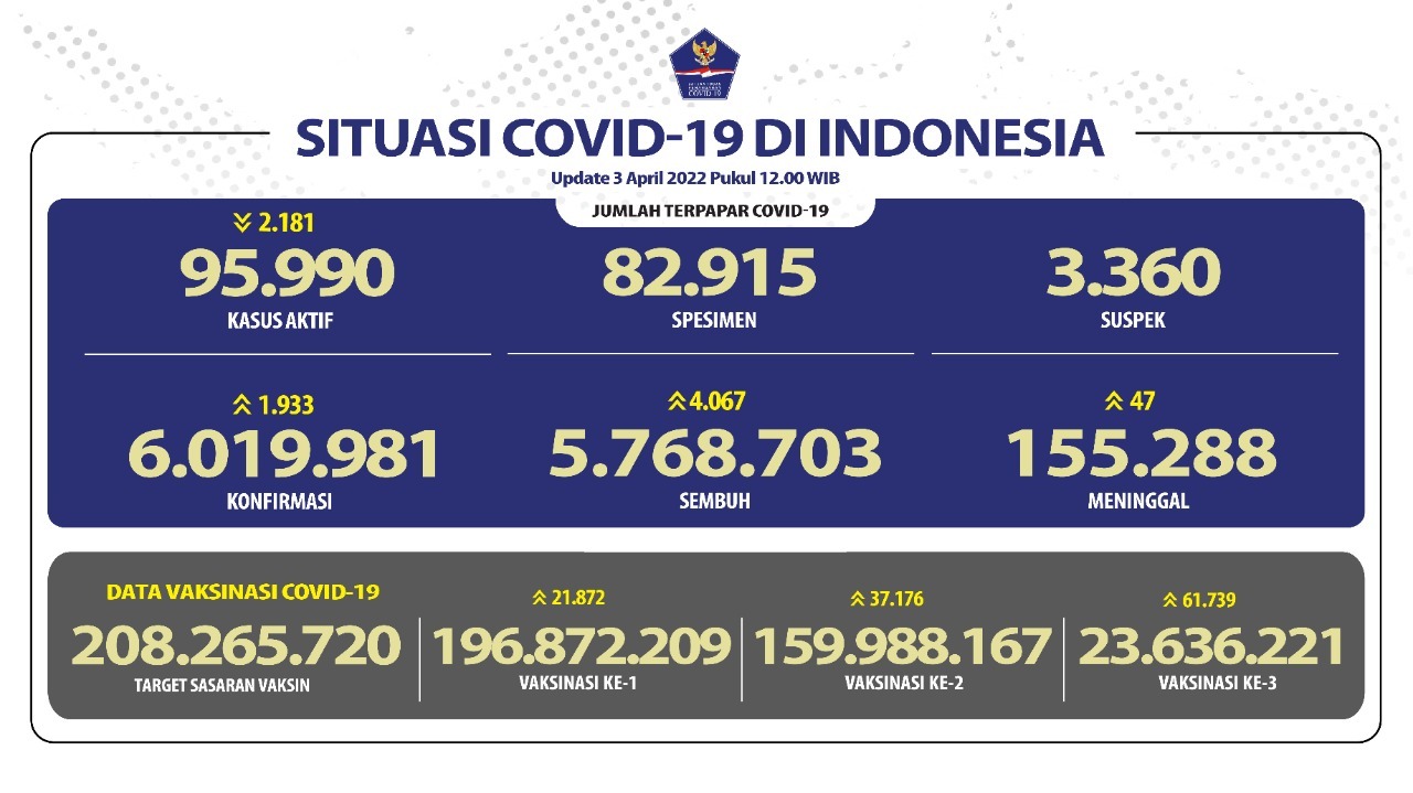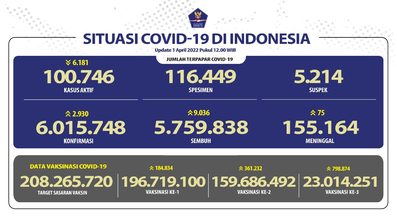 Update Covid-19 Nasional dan Provinsi Bali Sabtu, 2-4-2022
