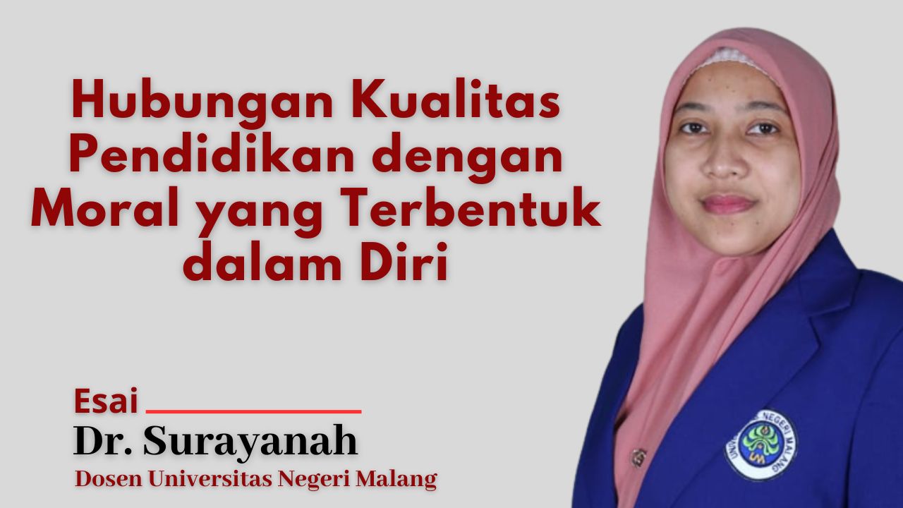 Esai Dr. Surayanah *) PENDIDIKAN dan moral adalah dua hal yang saling terkait dan mempengaruhi satu sama lain. Pendidikan memiliki peran penting dalam membentuk moral
