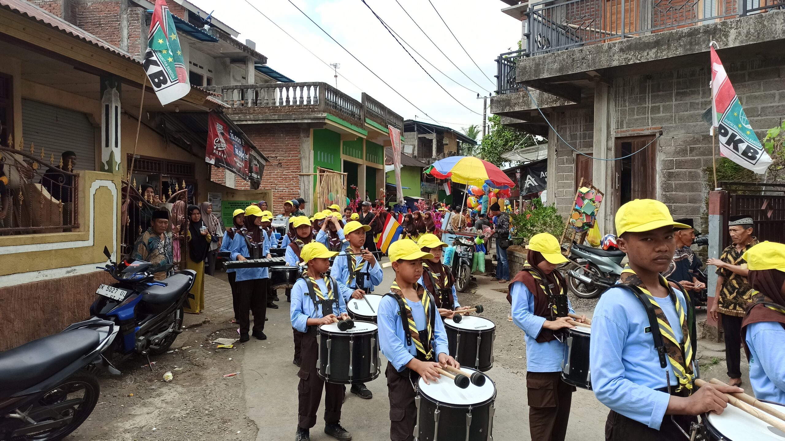 Aksi Drumband MI Al Huda Meriahkan Pawai Maulid Nabi Muhammad SAW