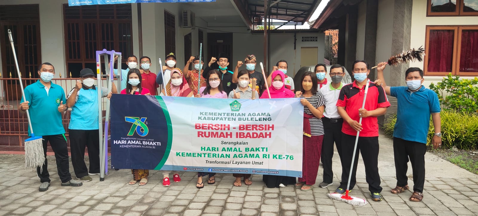 BULELENG – Semarakkan HAB-76 Kemenag RI, Kantor Kementerian Agama Kabupaten Buleleng menyelenggarakan kegiatan bakti sosial di tempat-tempat ibadah yang ada di Buleleng. Dengan tajuk