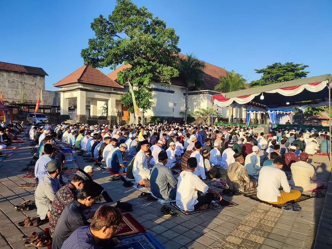 BULELENG – Ratusan warga Muhammadiyah Buleleng, Bali, melaksanakan sholat Idul Adha di areal Pelabuhan Tua Buleleng, Sabtu (9/7/ 2022) pagi. Pelaksanaan sholat Idul Adha