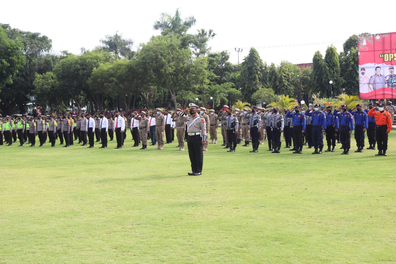 BULELENG – Kapolres Buleleng, AKBP Andrian Pramudianto, S.I.K., S.H., M.Si., memimpin apel gelar pasukan Operasi Lilin 2021 yang dilaksanakan di Lapangan Ngurah Rai Singaraja